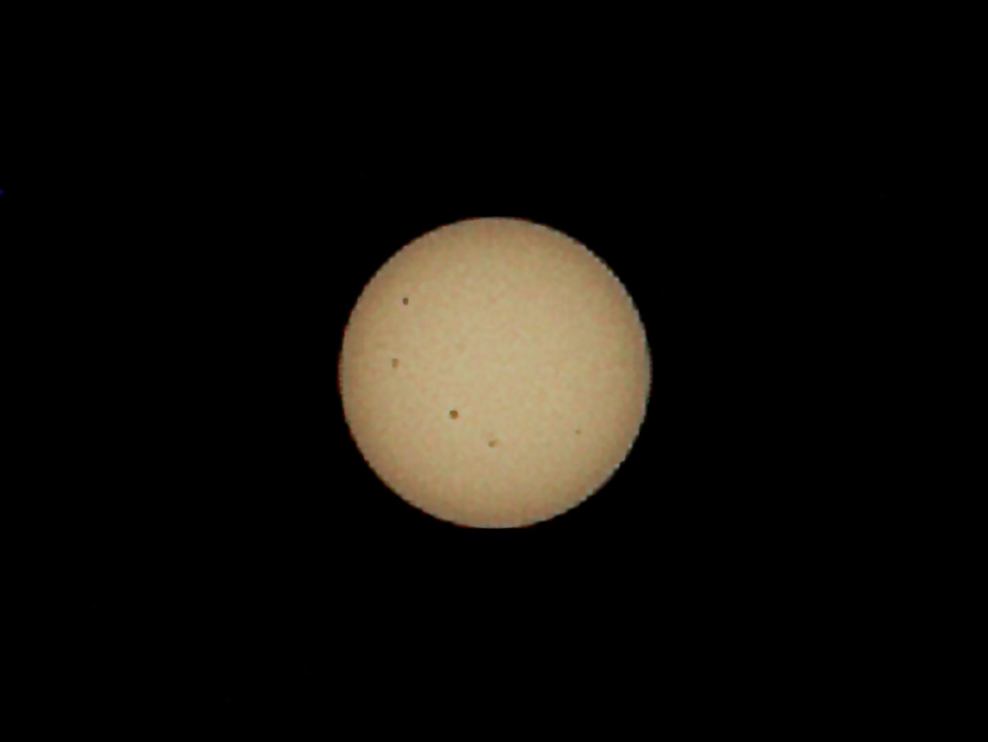 La photo "vu depuis ma cour" à été prise le 28 août 2024 à 14h34. C'était donc à peu près le midi solaire, heure où l'épaisseur d'atmosphère interposée est la plus faible, ce qui permet de minimiser la dégradation de la vue par un ciel très légérement voilé. Le Soleil se tenait, comme d'habitude, à 150 millions de km de moi. Le capteur utilisé, comportant 20 millions de pixels, était protégé par un filtre qui atténuait cent mille fois la lumière.