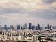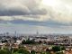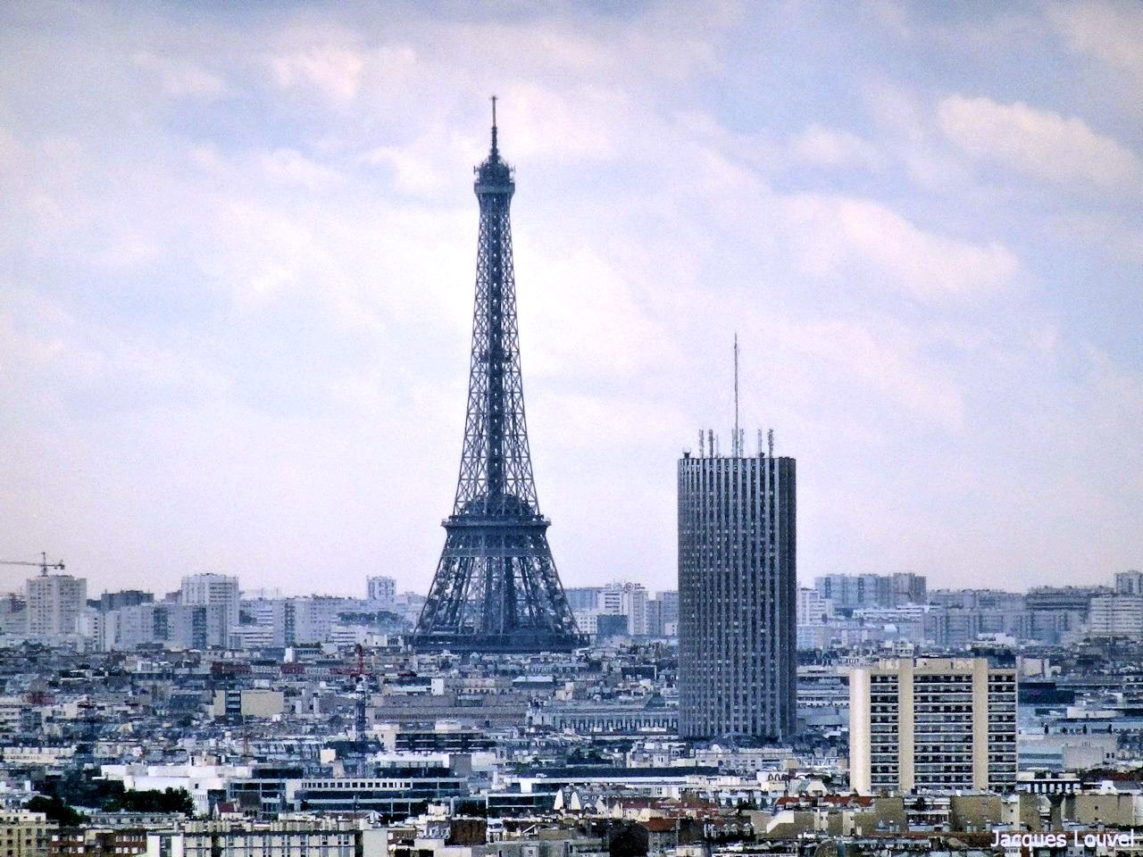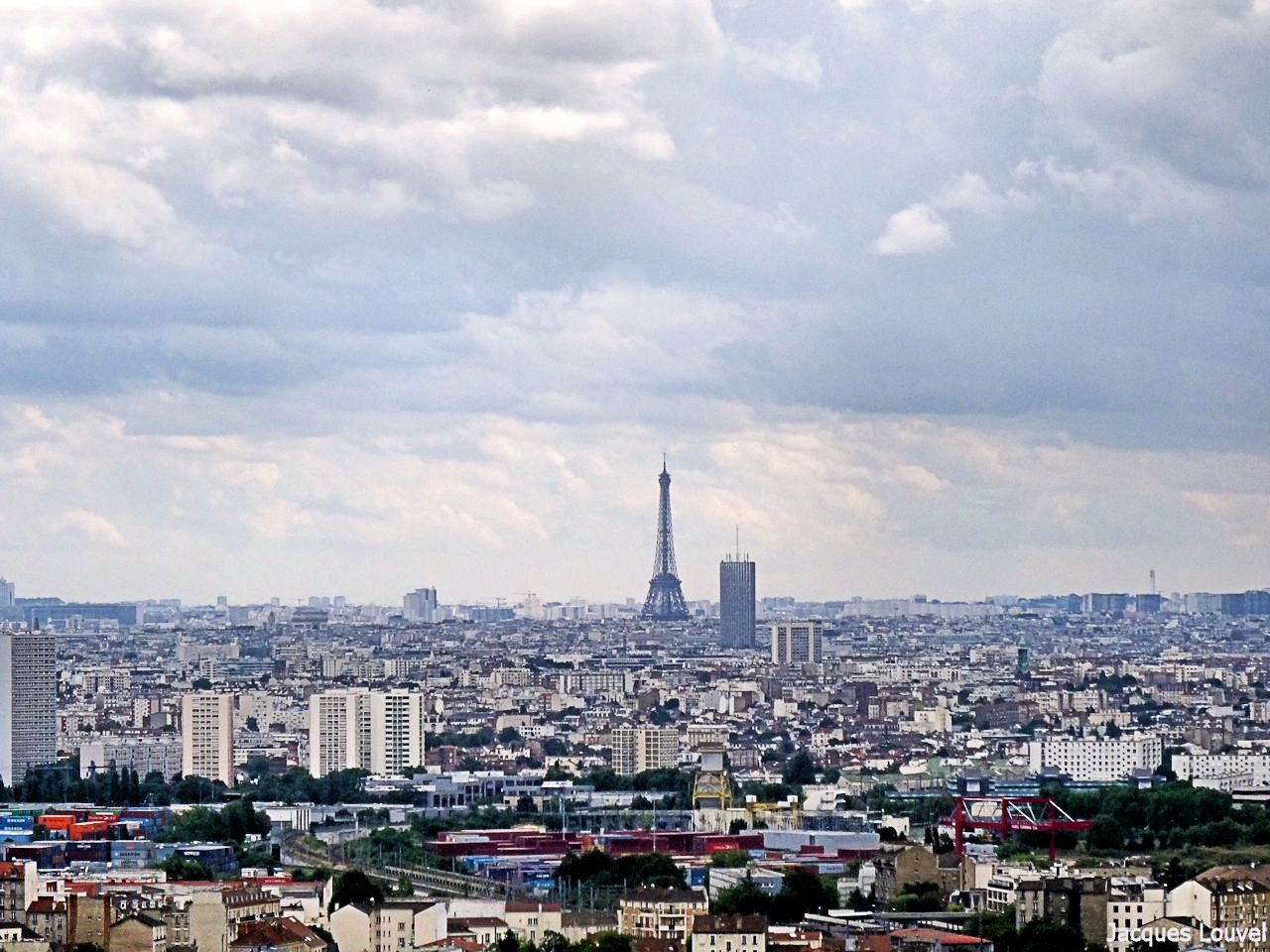 Vue panoramique de Paris côté nord ouest depuis les coteaux d'Argenteuil. On voit à droite le Mont Valérien, puis le quartier de la Défense, puis au centre la porte Maillot et la Tour Eiffel, et à gauche la butte Montmartre avec le Sacré Cœur. Depuis ce point de vue, la tour Montparnasse serait juste derrière la tour du palais des congrès de la porte Maillot et la tour Eiffel. Il y avait un peu de vent ce 15 mai. La pollution était moins importante que lors de ma précédente photo du même point de vue. (cliquer sur la photo pour l'agrandir). Les photos des détails ont été prises le 10 août 2014 par temps couvert rapidement changeant avant la pluie.